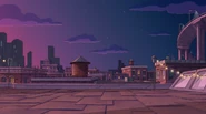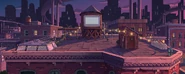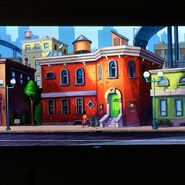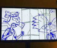 Grandma and a pirate stop and watch the water tower fall. Deleted scene, boarded by Steve Lowtwait