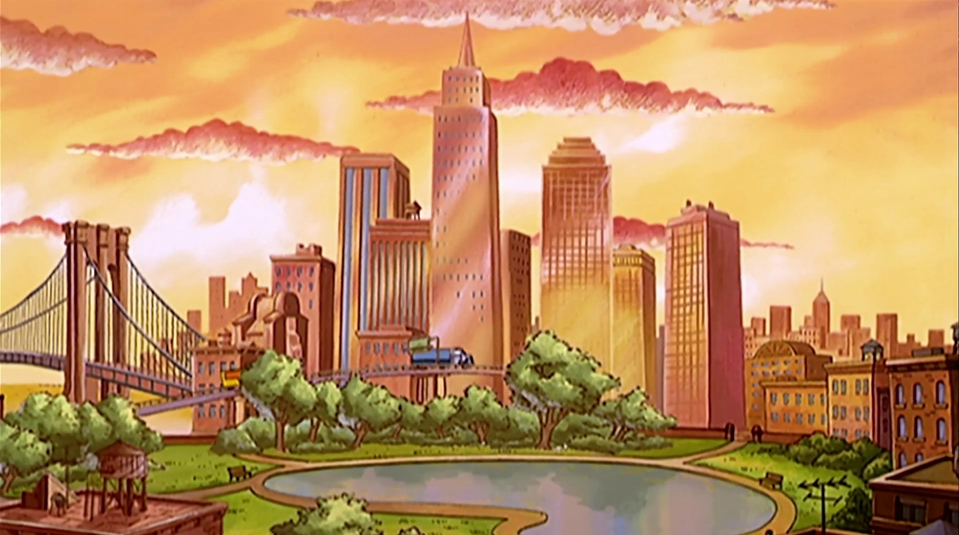 The bridge seen in several episodes as a prominent landmark (see image, far left) resembles the Brooklyn Bridge. Hillwood's brownstone buildings, stoops, boarding houses, and subway are also similar to those of Brooklyn.