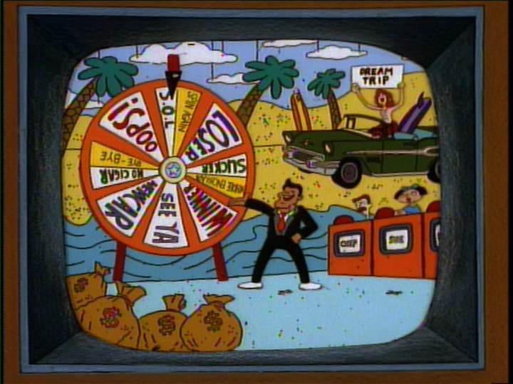 - As seen in the episode "Arnold's Halloween, the different spaces on the wheel read "OOPS!," "No Cigar," "Big Car," "See Ya," "Winner," "Whole Enchilada," "Sucker," "Loser," "Spin Again," and "S.O.L.(abbreviation for "sorta outta luck")."